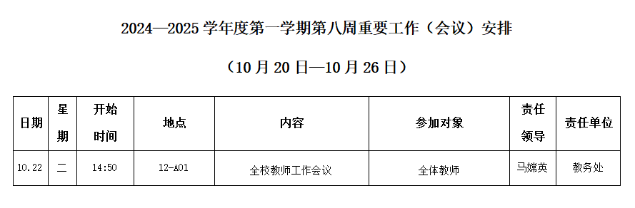 2024—2025学年度第一学期第八周重要工作(会议)安排(10月20日-10月26日)