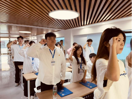 信息工程团总支负责人廖丹老师带领团总支学生会新老团员进行入团宣誓: