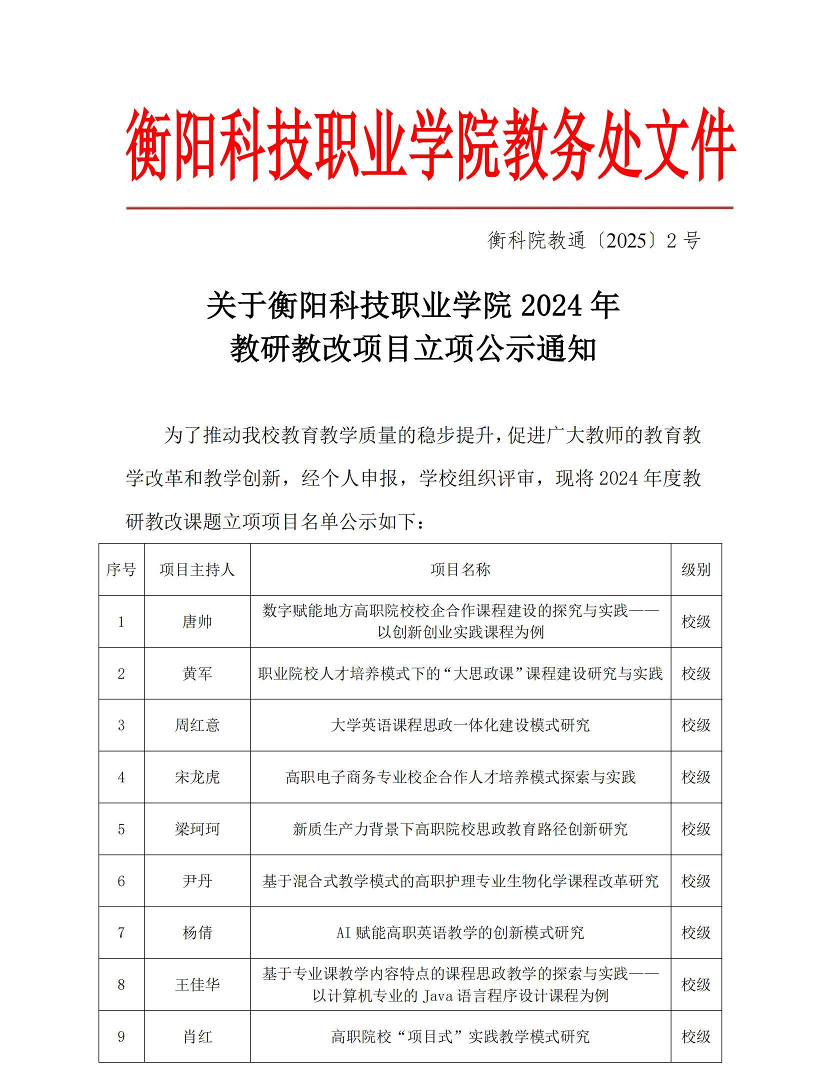 关于冰球突破试玩网站2024年教研教改项目立项公示通知