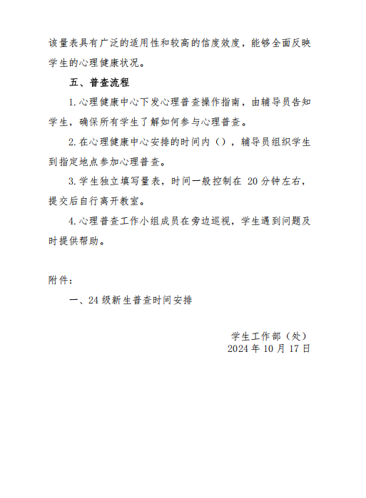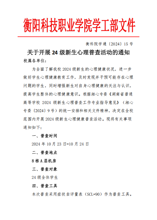 衡科院学通 15号 10月17日24级心理普查活动通知