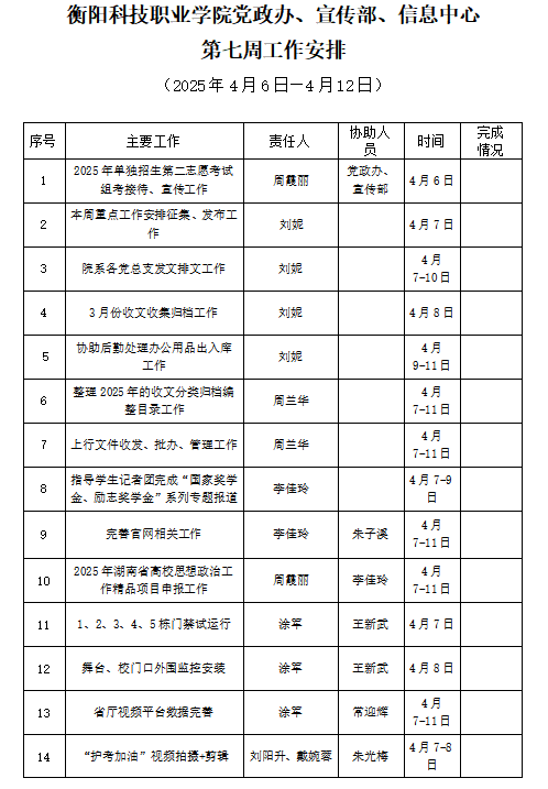 冰球突破试玩网站党政办、宣传部、信息中心 第七周工作安排