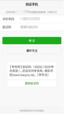 3、验证手机号码(首次登录需操作):第一次登录系统的考生,在打印准考证前需验证联系电话有效性。系统会向考生手机发送随机验证码短信,收到短信后,填写验证码完成验证。