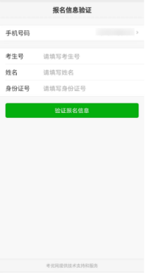 4、报名信息验证:考生填写本人考生号、姓名、身份证号信息,系统将验证考生信息是否正确以及是否报考我校。