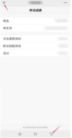 点击“考试成绩”,则会显示考生本次所有成绩。查询完成后请点左上角按钮退出界面,或点右下角按钮返回上一步。