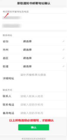 请认真核对报名时所留地址及电话,按要求选择和填写所有项(所有项必须填写,才能确认),确认后则完成所有操作。