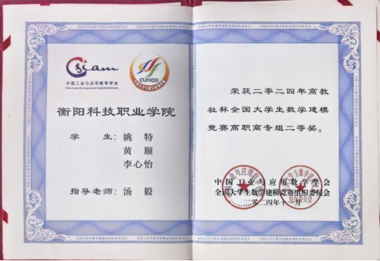 2024年11月,2024年“高教社杯”全国大学生数学建模竞赛颁奖典礼圆满落幕。由李天朔、汤毅老师指导,黄顺、姚特、李心怡三位同学组成的团队凭借《基于交通流量管控优化策略研究》课题,荣获全国二等奖,展现了我校在数学建模领域的强劲实力。