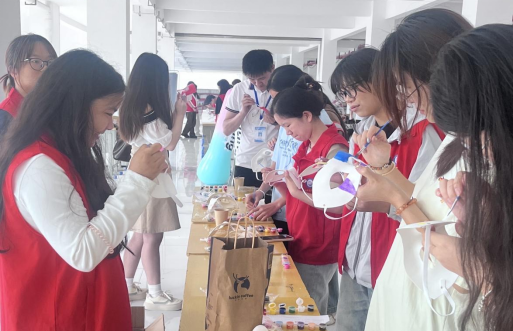 在情绪探索区,“情绪识别” 摊位前围满了专注创作的同学。一张张空白面具在彩笔勾勒下,化作承载情绪的载体 —— 有人用明黄色描绘喜悦,有人用深蓝渲染焦虑,还有人用破碎线条表达迷茫。