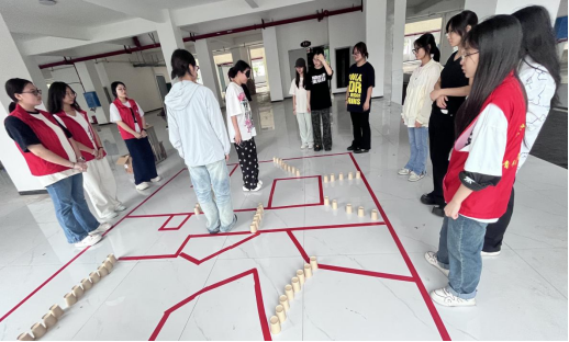 人际互动区成为了友谊升温的催化剂。“勇闯雷阵” 游戏中,蒙眼的同学小心翼翼地迈出每一步,耳边是搭档清晰而温柔的指引:“左前方两步,有障碍物,抬左脚……” 当两人携手冲过终点时,默契的笑容在彼此眼中绽放。