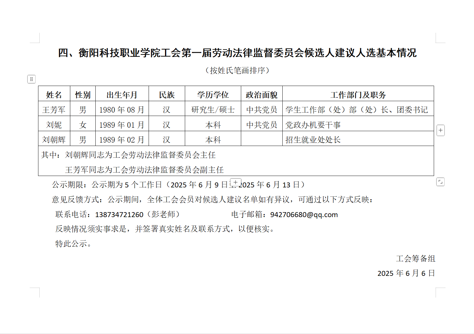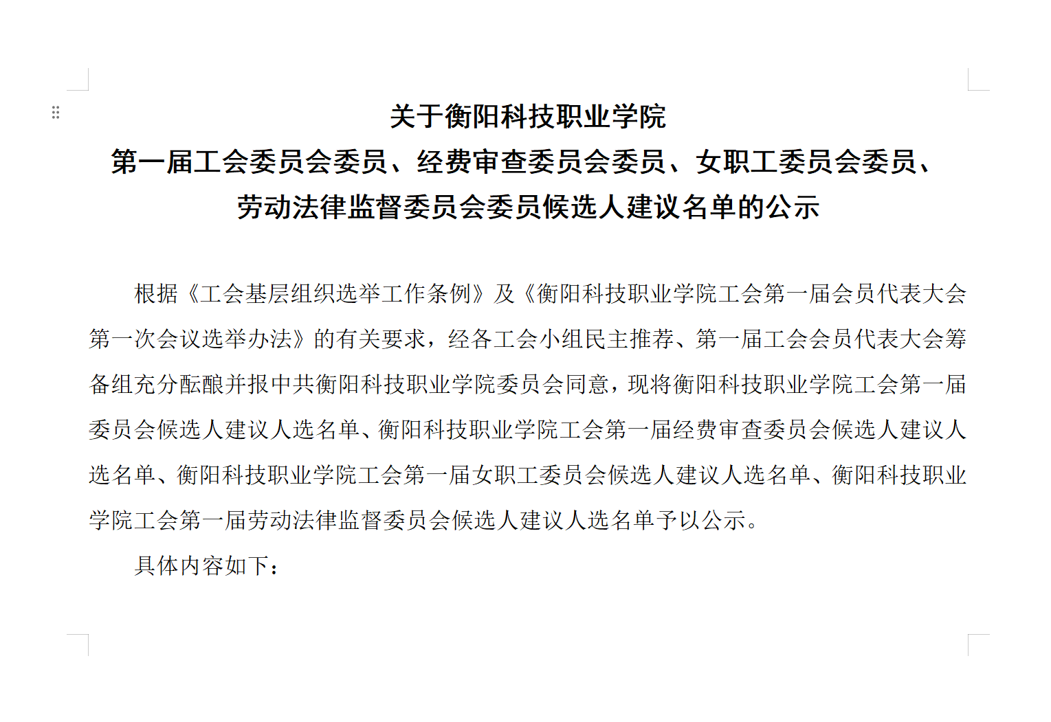 关于冰球突破试玩网站第一届工会委员会委员、经费审查委员会委员、女职工委员会委员、劳动法律监督委员会委员候选人建议名单的公示