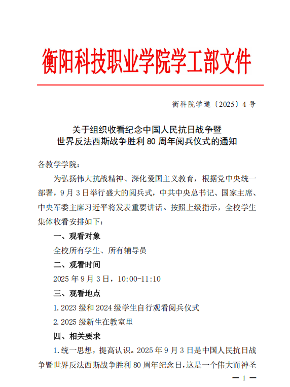 衡科院学通〔2025〕4 号80周年阅兵仪式的通知