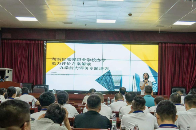 晚上,党委委员、副校长马嫦英作了《湖南省高等职业学校办学能力评价方案解读》的专题讲座,对高等职业学校办学能力评价的指标体系、评价流程及结果运用进行系统解读,帮助学员对标对表,明确方向。