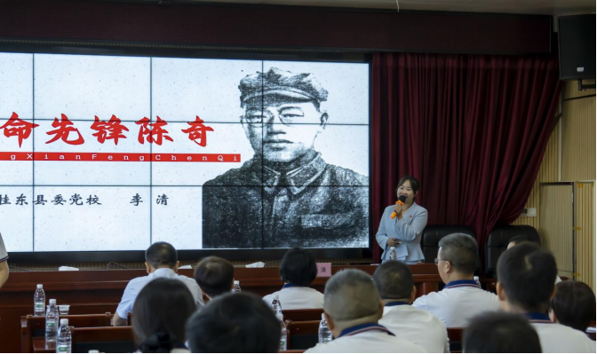 23日上午,桂东县委党校教师李清的专题讲座《革命先锋陈奇》落幕随即举行了培训总结会。肖启梁主持总结会,四个学习小组代表依次登台,以“一分钟表态、一辈子践行”的铿锵誓言向组织递交三天研学答卷。