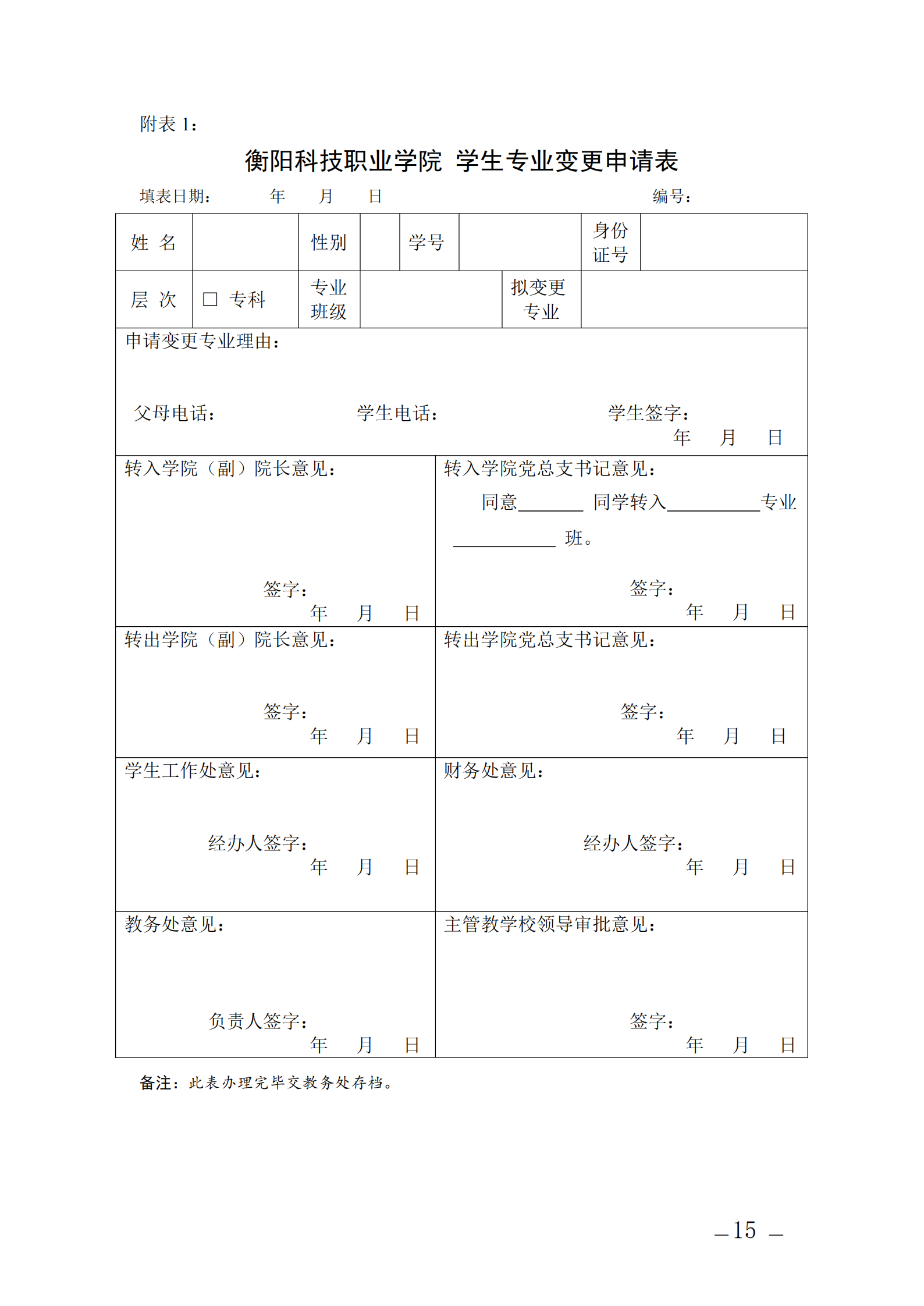 学生专业变更申请表