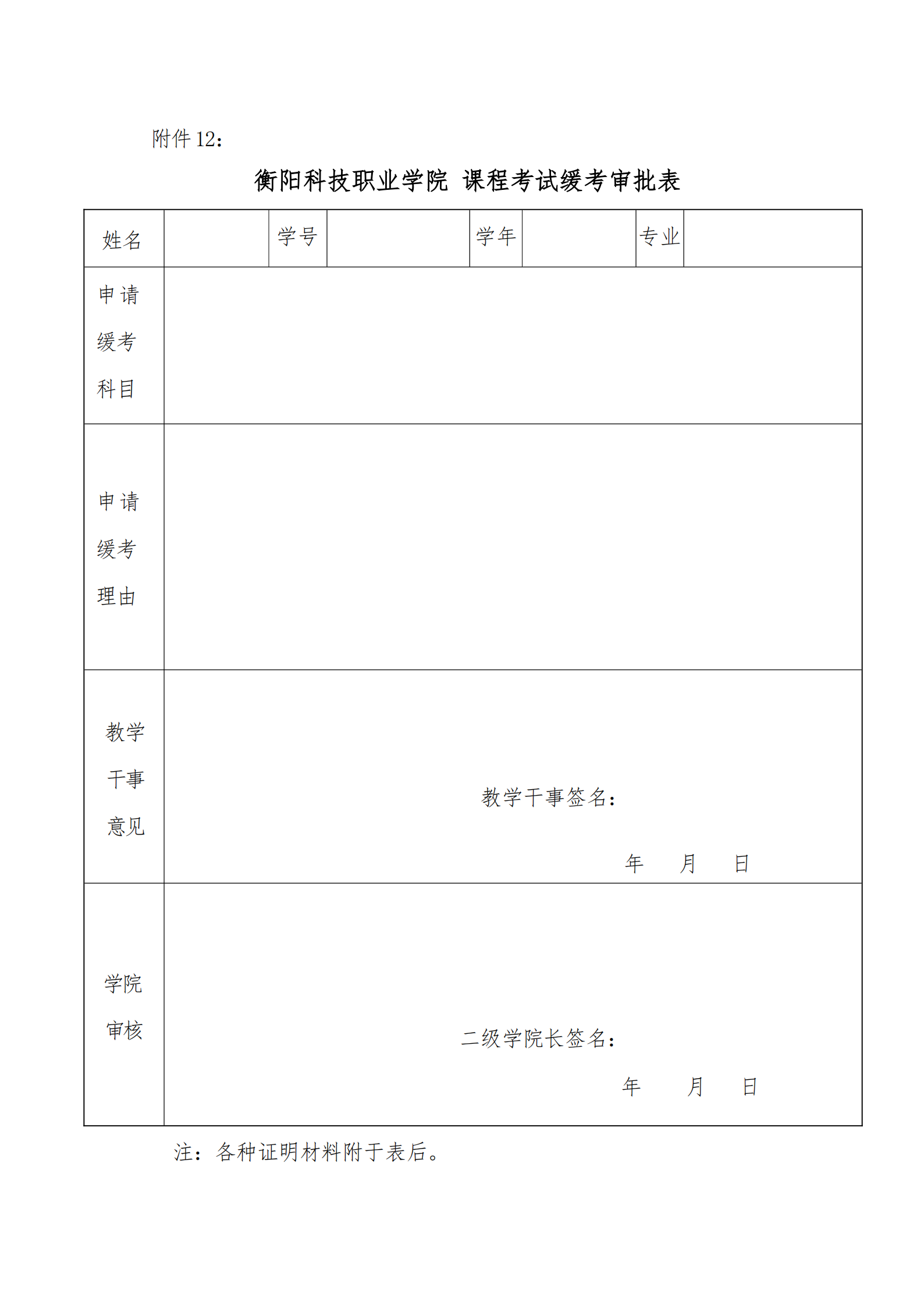 课程考试缓考审批表