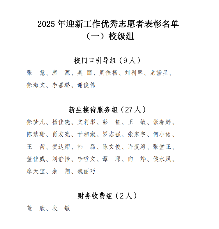 关于2025年迎新工作优秀志愿者表彰名单的公示