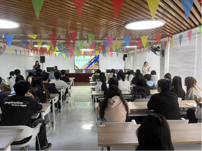 图书馆主讲人唐芩萱开展“图书馆认知教育”专题讲解。她围绕图书借阅制度、藏书布局、排架规律、门禁使用及借还系统等核心内容,结合生动案例与现场演示,清晰呈现图书馆基本运营模式与使用规范,为新生后续高效利用馆藏资源筑牢基础。