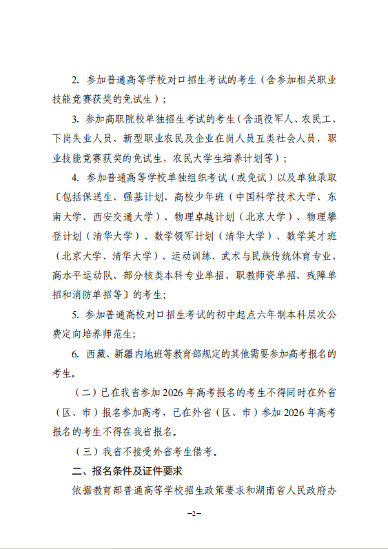 关于做好2026年普通高等学校招生考试报名工作的通知