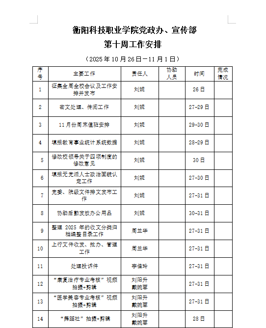 冰球突破试玩网站党政办、宣传部 第十周工作安排(10月26日-11月1日)