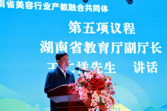 湖南省教育厅副厅长王仁祥出席并致辞。他指出,共同体的成立是深化职业教育改革、推动产教融合的重要举措,将促进教育链、人才链与产业链、创新链有机衔接。他期待共同体在共建实训基地、共享教学资源、共研行业标准等方面发挥实效。省教育厅将持续支持共同体建设,期望其充分发挥示范作用,为湖南美业输送更多德技并修的高素质技能人才。