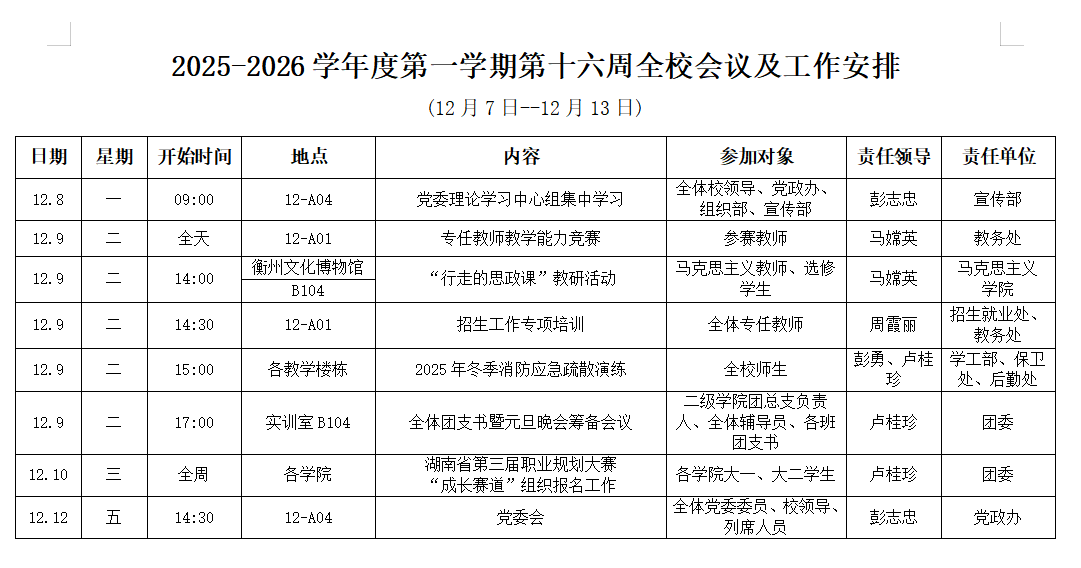 第十六周工作安排