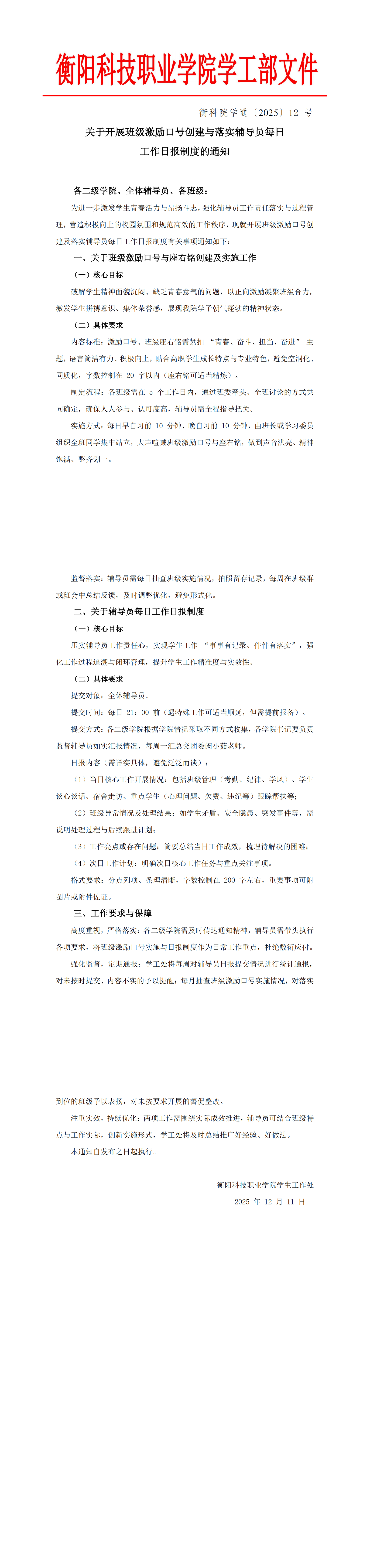 衡科院学通〔2025〕12 号 关于mg冰球突破豪华版试玩网站关于开展班级激励口号创建与落实辅导员日报通知