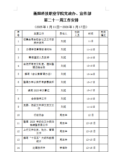 冰球突破试玩网站党政办、宣传部 第二十一周工作安排(1月11-1月17日)_周工作安排_冰球突破试玩网站