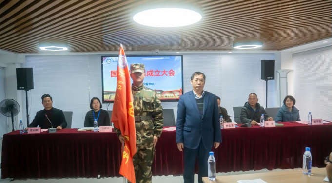 紧接着,进行连旗授旗仪式,党委书记彭志忠庄重地将连旗授予国防教育连,鲜艳的连旗,是国防教育连沉甸甸的责任与使命的象征,更承载着全体成员的希望与梦想。从此时开始,连旗交接,使命传承,每位成员都真切地感受到肩头重担与心中荣耀。这面旗帜,将引领他们冲破风雨,凝聚团队力量,书写属于国防教育连的璀璨篇章。