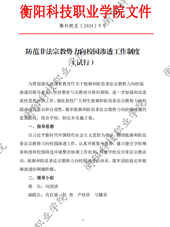 防范非法宗教势力向校园渗透工作制度(试行)